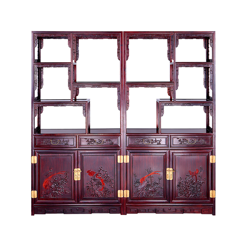 富贵花鸟 书格-大红酸枝