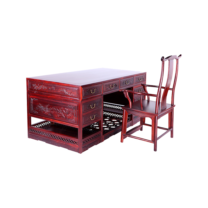 富贵花鸟 书桌-大红酸枝